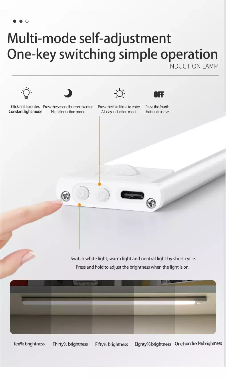 ?Carregamento rápido e bateria de longa duração?Luz LED para armário com bateria de íon de lítio recarregável embutida, só precisa de 3 horas para carregar rapidamente, pode durar mais de 5 horas no modo sempre ligado
